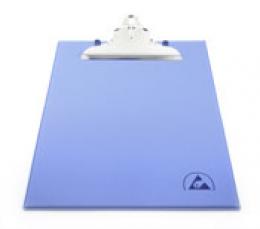 Features: Blue Vinyl with printed ESD symbol. Measuring 9″x12″. 5″ wide metal clip.